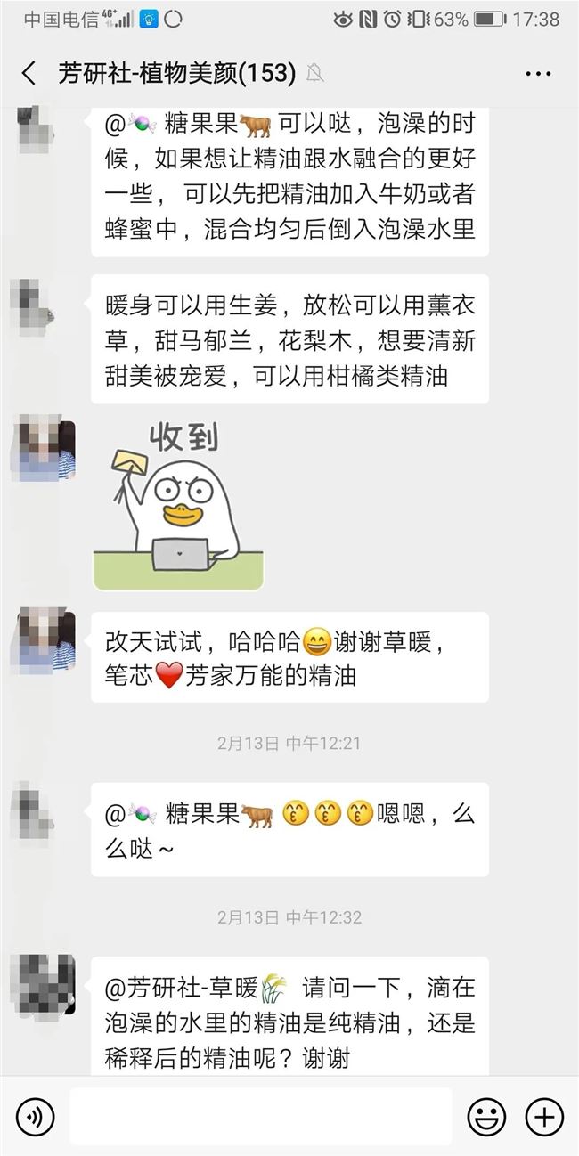 專業(yè)知識分享讓用戶在產(chǎn)品方面用的放心,而“日常的情感交流則讓用戶在這里仿佛找到了一個心靈港灣”,清芬表示,芳研社總的原則是保持學(xué)習和進步,不斷給老客戶帶來新鮮感,不斷去增加彼此的信任。