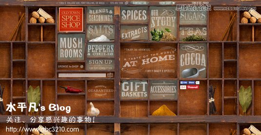 不過除了吸引人的交互,優(yōu)美的設(shè)計(jì)也提供了一層額外的理解??纯瓷厦孢@個(gè)Old Town Spice Shop案例,你會(huì)發(fā)現(xiàn)這個(gè)網(wǎng)站的櫥柜式布局立刻暗示了這家公司的意圖和香料產(chǎn)品。